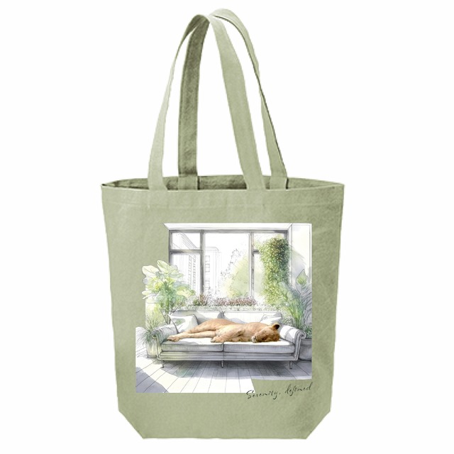 13oz ライトウォッシュキャンバストート(M) ソファで寝ているライオン コットンバッグ オリーブ