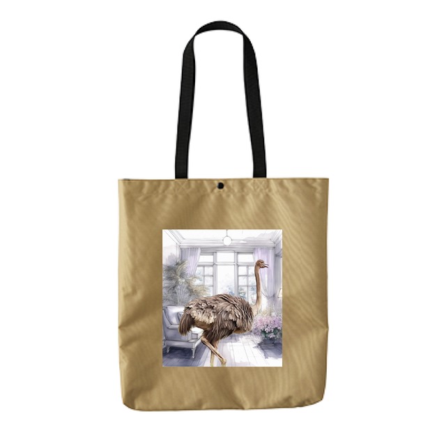 **【日本製】 TRUSS リサイクルポリエステル B4トートバッグ リビングに立っているダチョウ** **サイズ:** B4対応 (横幅 37 縦幅 40 マチ 5 持ち手 65 (cm)) **素材:** リサイクルポリエステル100% TRUSS リサイクルポリエステル B4トートバッグは、環境にやさしい素材を使用し、スタイリッシュなデザインが特徴のバッグです!新たに登場したこのアイテムは、普段の通勤やお出かけに加え、ちょっとした買い物にも最適です。 **ユニークなデザインで街を彩る!** 愛らしいダチョウのプリントが、あなたのスタイルに遊び心を加えます。丈夫なリサイクルポリエステル素材がしっかりとした作りで、日常の使用にも耐えるので、安心してご利用いただけます。毎日のコーディネートのアクセントとしてぜひ取り入れてみてください! **実用性抜群の収納力** B4サイズの大きさで、書類やタブレットなどを楽々収納できます。内ポケット付きで小物の整理も簡単。また、軽量設計にも配慮されているため、持ち運びも快適です。さまざまなシーンで活躍するバッグとして、大変便利なアイテムです! この商品画像はオリジナルプリント.jpで生成したイメージです。実物とは異なる場合がございますのでご注意ください。 Amazonより同デザインで以下も販売しております。以下リンク先よりご覧いただけます。 Tシャツ (メンズ、レディース、キッズ) https://ourl.jp/KsrUV 長袖Tシャツ https://ourl.jp/LPsx2 トレーナー https://ourl.jp/BK92g パーカー https://ourl.jp/ZEdCh ジップパーカー https://ourl.jp/MYqwx iPhone用ケース https://ourl.jp/klYhJ