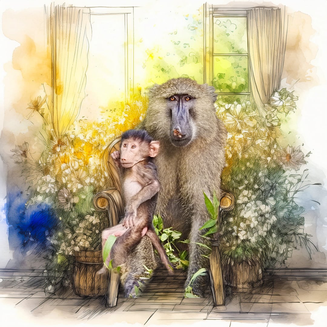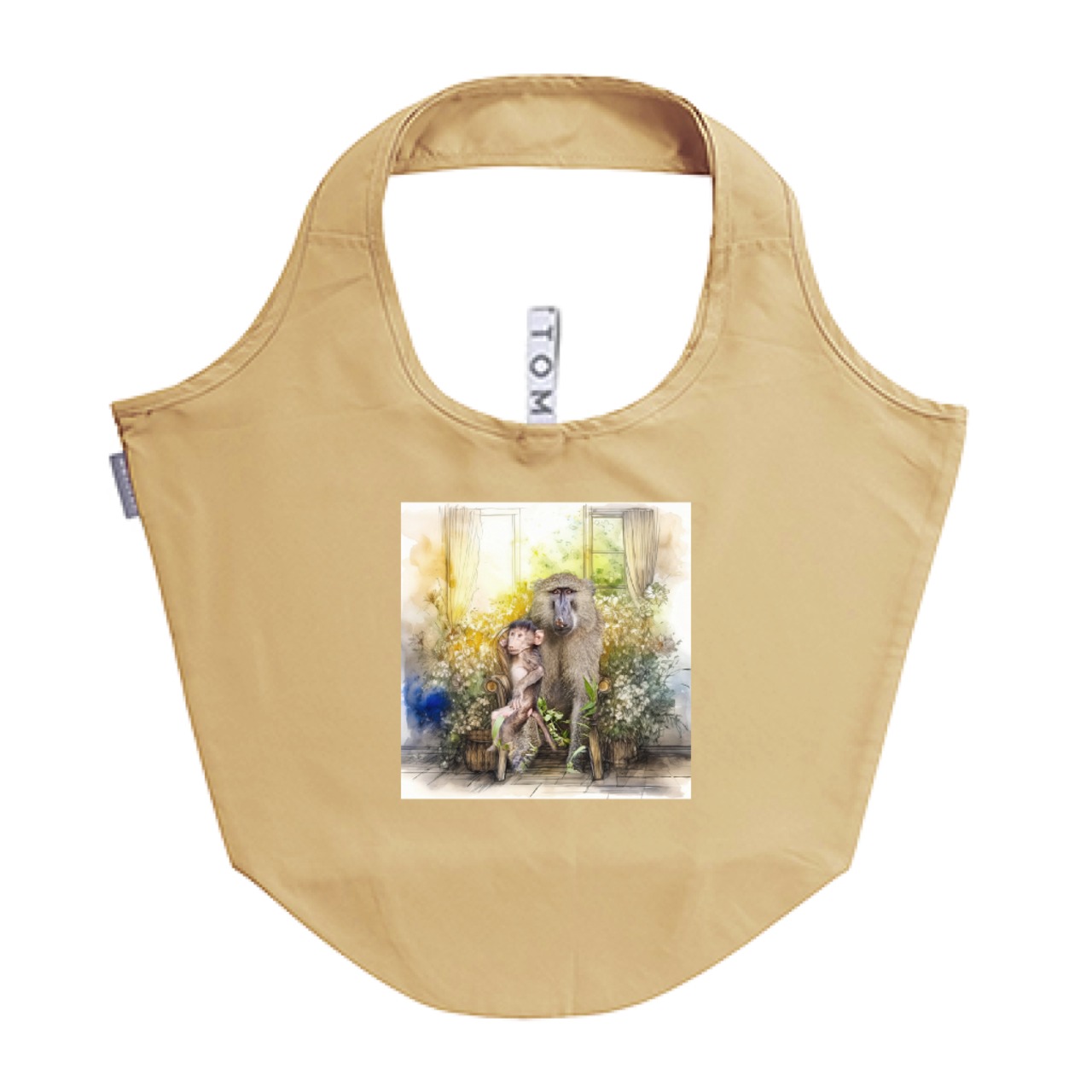 **MOTTERU クルリト マルシェバッグ ベージュ 椅子に座っているマントヒヒ**