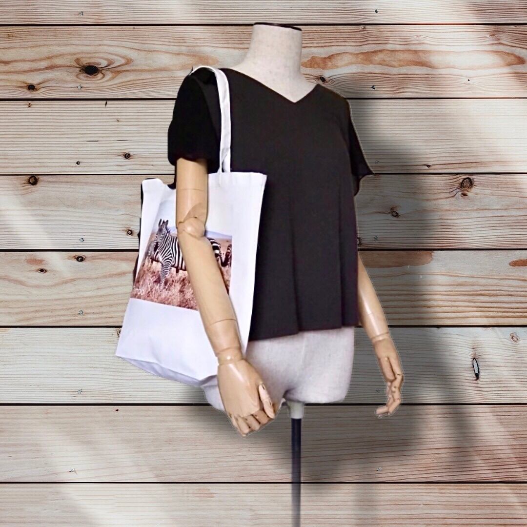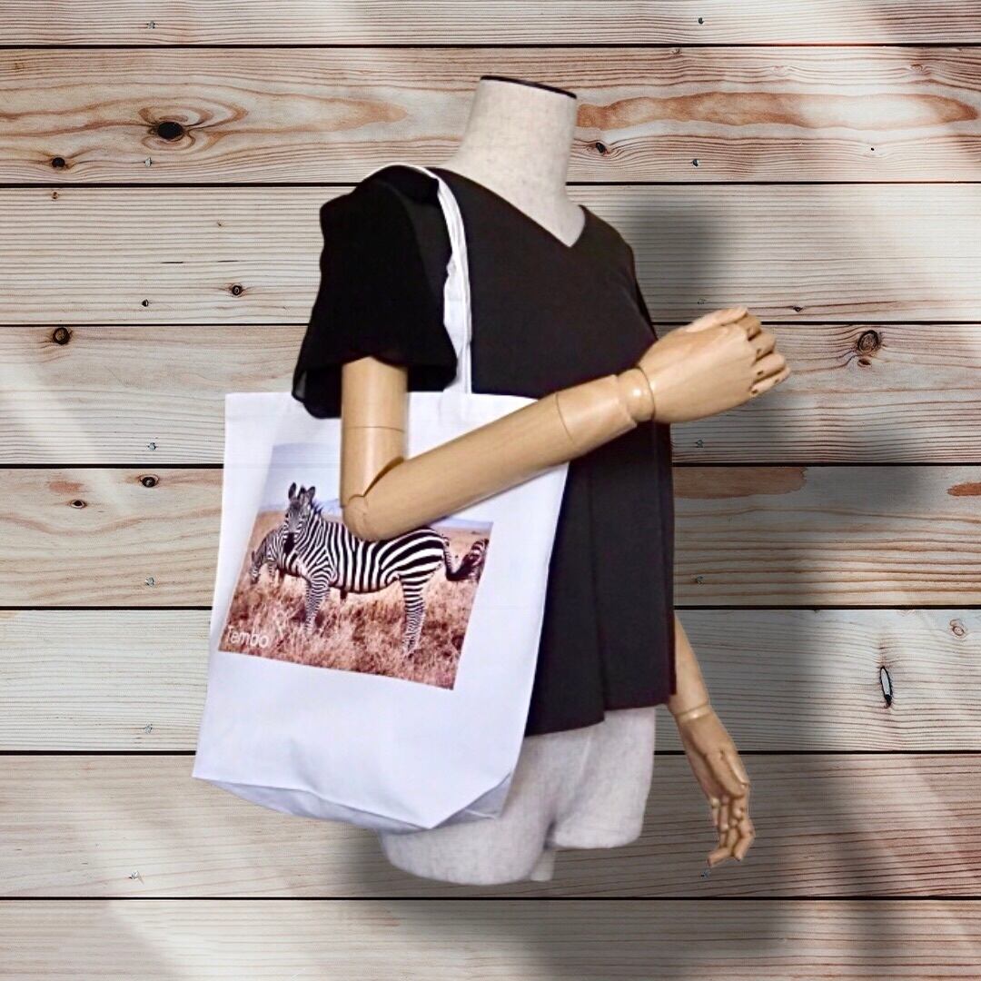 クリーンなホワイトのベースに映えるシマウマのデザインがアクセントとなり、さまざまなスタイルと組み合わせやすいアイテムです。このバッグを持つことで、普段の買い物や外出が特別な体験へと変わります♪