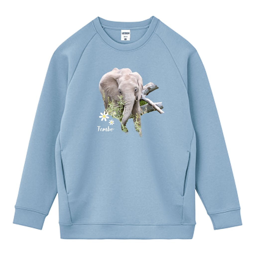 柔らかなスモーキーブルーがどんなコーディネートにもマッチし、アフリカゾウのデザインがさりげなく主張します。このトレーナーを着ることで、あなたのスタイルがいっそう魅力的に引き立ち、毎日のファッションに新たなインスピレーションをもたらすでしょう♪