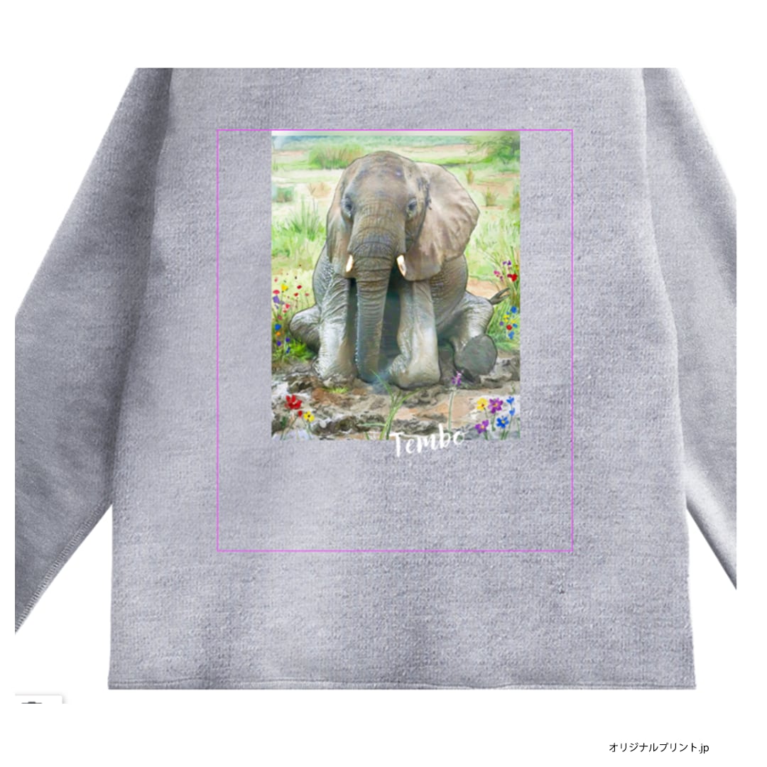柔らかなグレーが主張しつつ、アフリカゾウのデザインが華を添えています。このパーカーを着ることで、普段のコーディネートにユニークなアクセントを加え、あなたの個性を引き立てる新しいスタイルが完成します♪