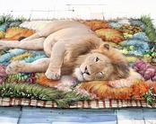 **シャンブリックキャンバスフラットポーチ(L) ベージュ ライオン**