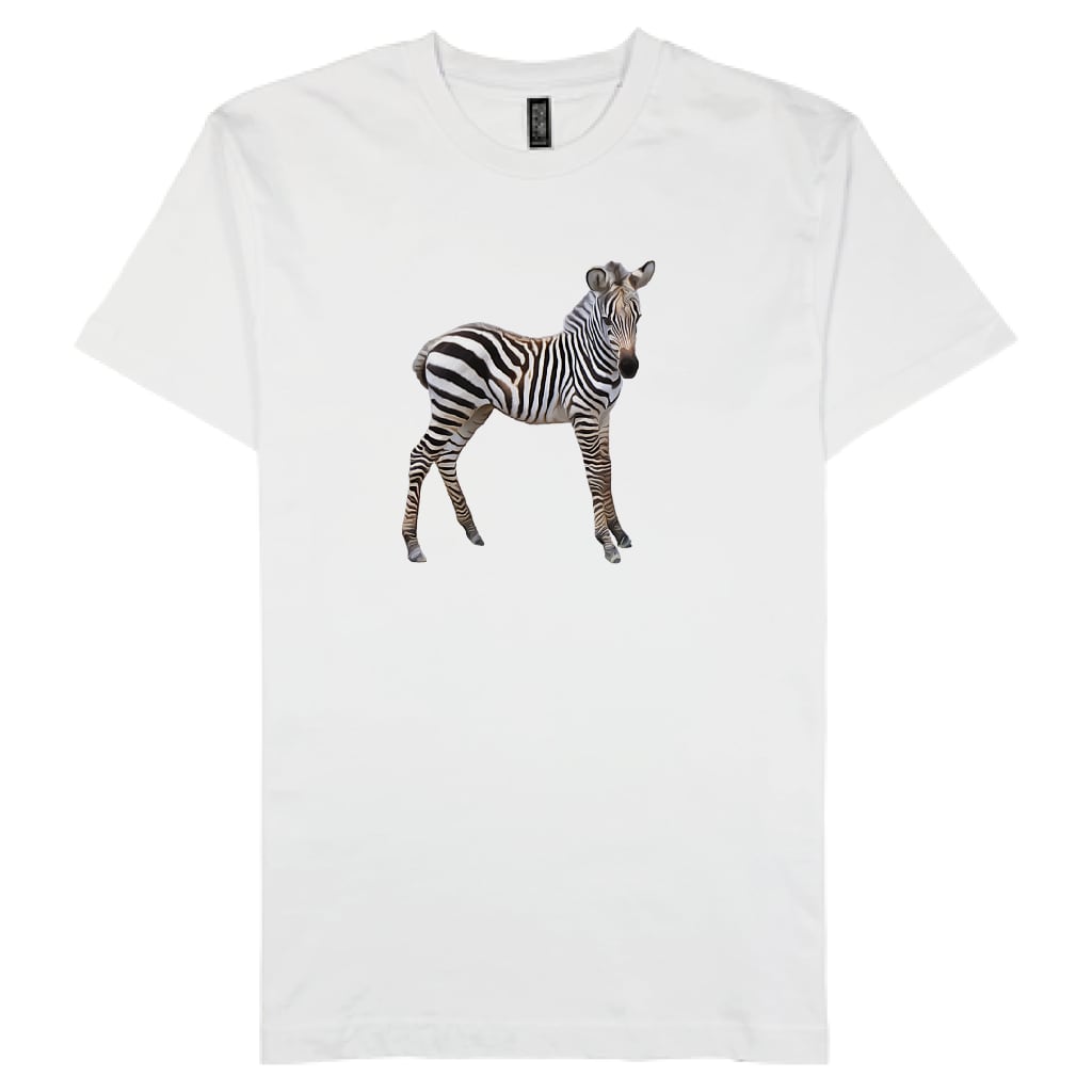 ホワイト地に映えるシマウマのイラストが、シンプルながらもインパクト大!このTシャツを着ることで、普段のコーディネートに一際目を引くアクセントを加え、あなたのスタイルを一層引き立てることでしょう♪
