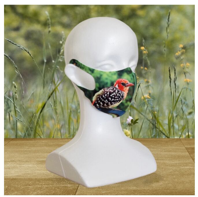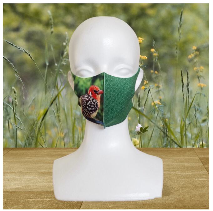 美しいホオアカオナガゴシキドリ柄が魅力的なこのマスクは、快適さと個性を融合させた素晴らしいアイテムです!新たにラインアップに加わったこのマスクは、日常のスタイルにユニークなアクセントをもたらすデザインとなっています。