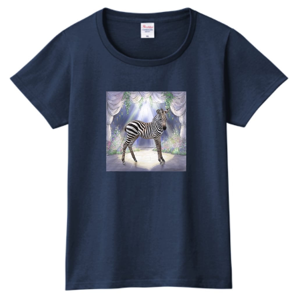 **Printstar ヘビーウェイトTシャツ (レディース) メルトブルー ステージに立つシマウマの赤ちゃん**