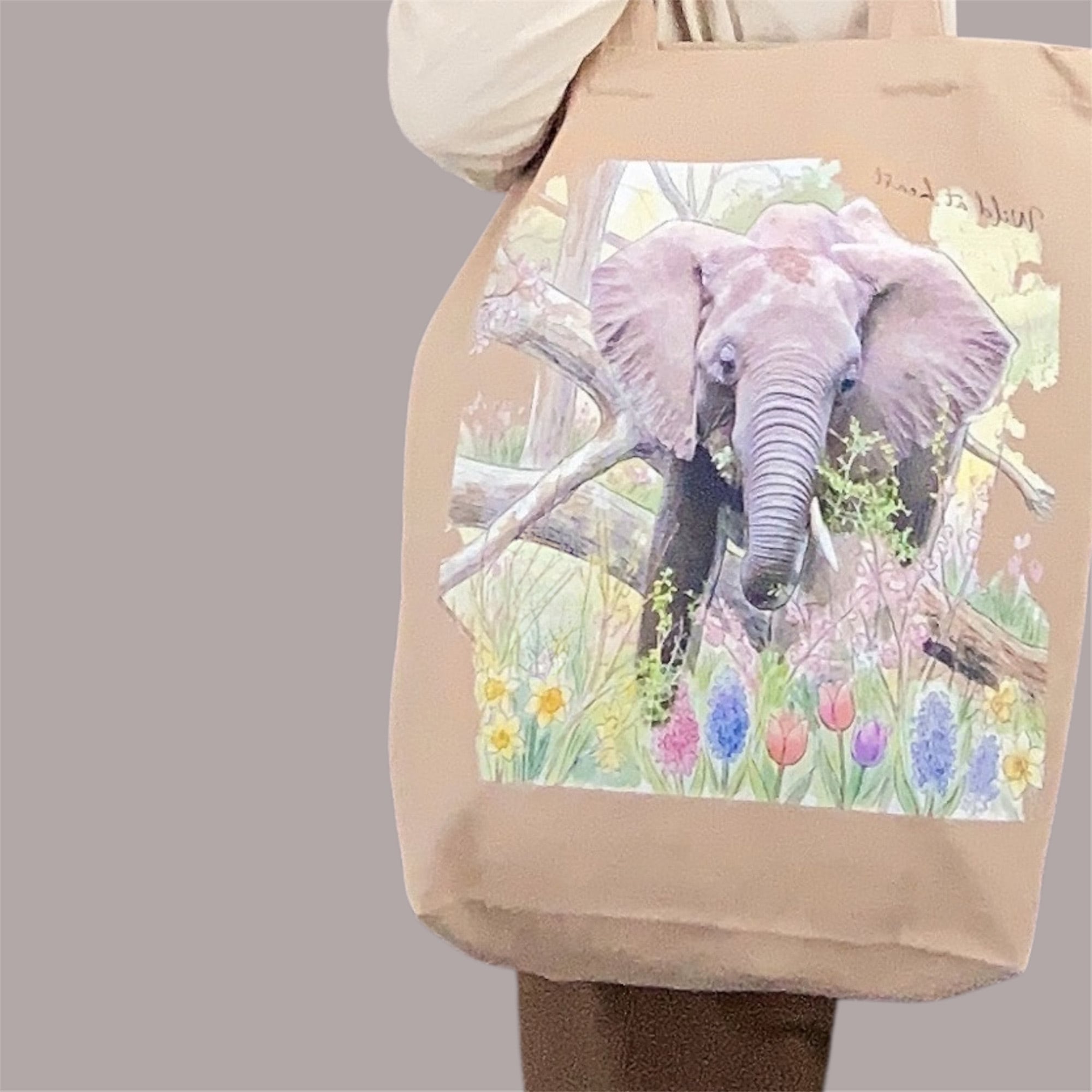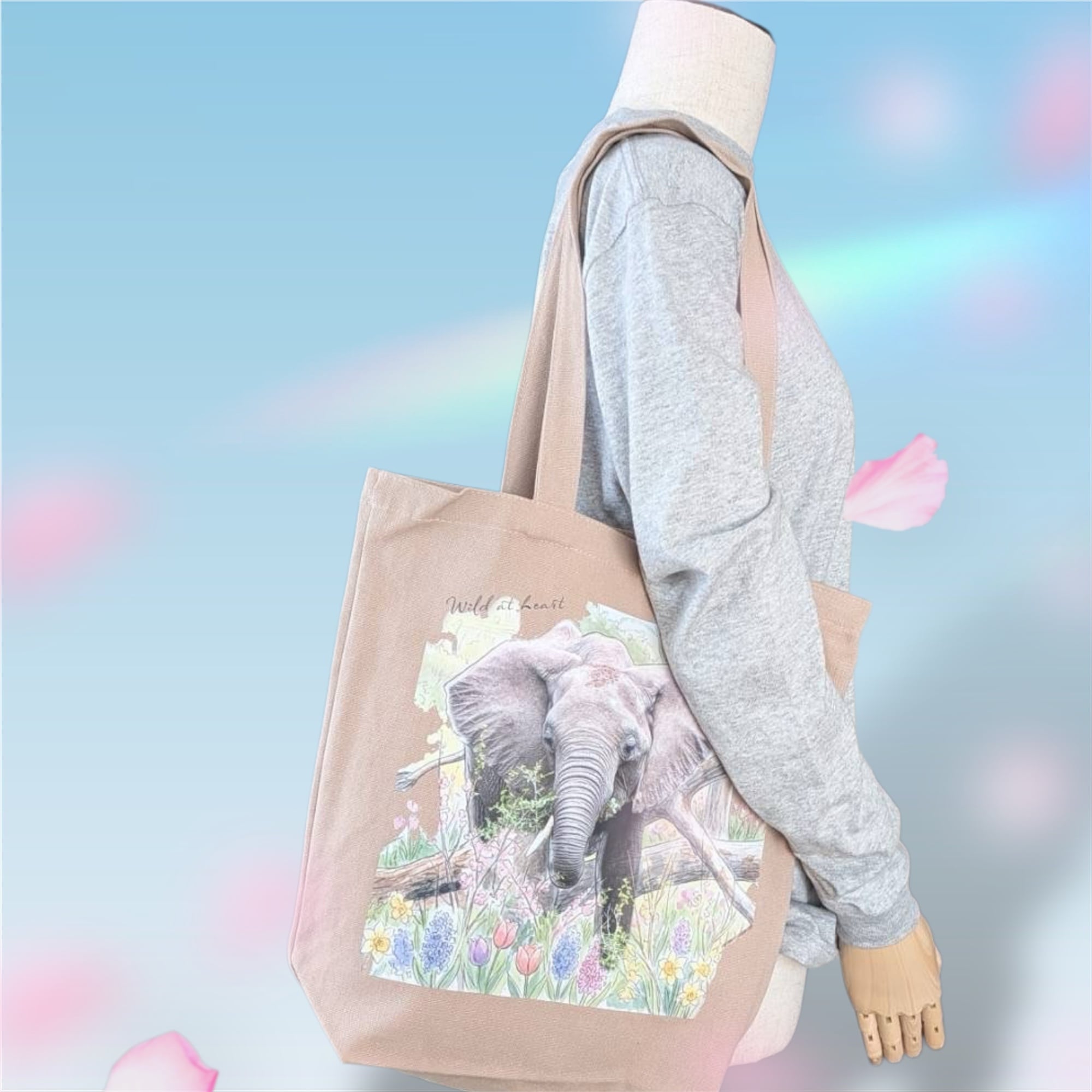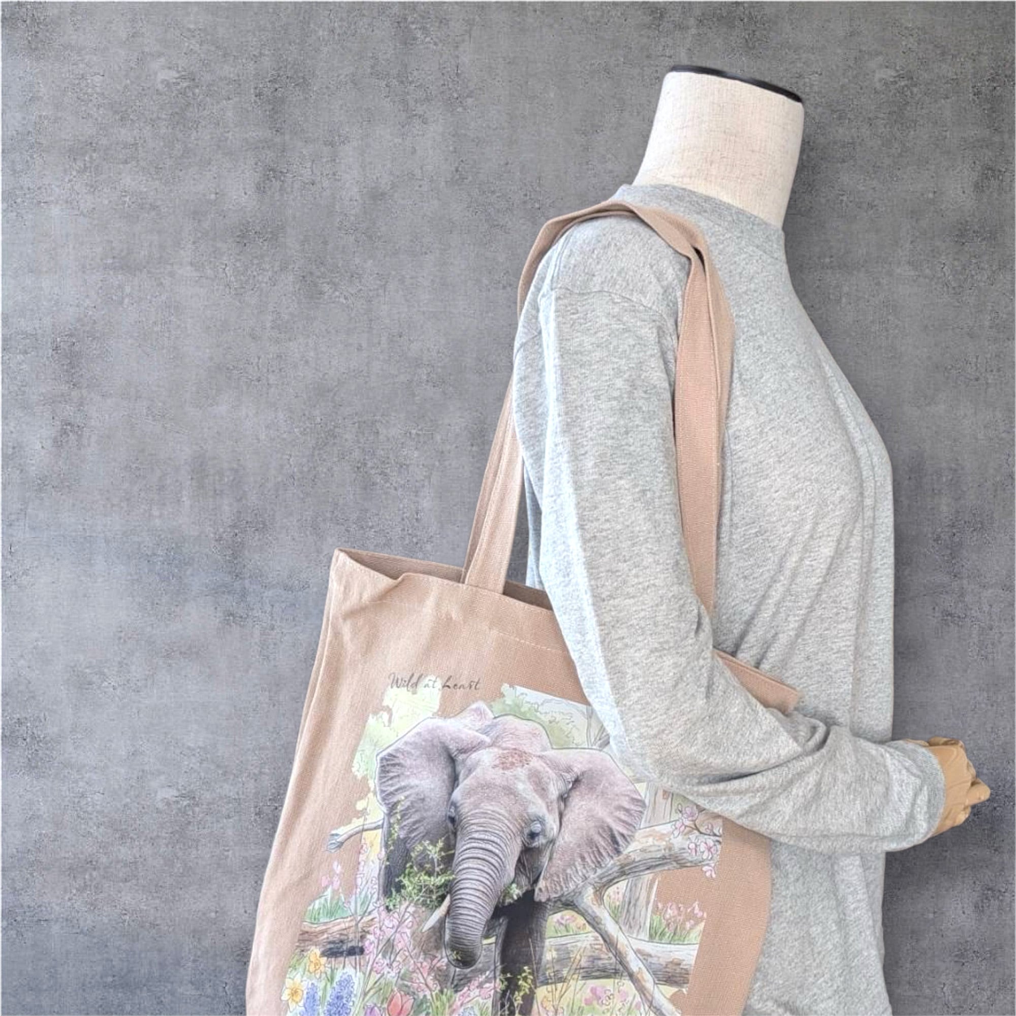 美しいアフリカゾウが描かれたこのトートバッグは、見る人の目を引く特別なアイテムです。このバッグを持つことで、あなた自身のスタイルが際立ち、会話がより楽しくなることでしょう。ベージュの色合いは、シンプルでありながらも温かみがあり、さまざまなコーディネートに自然に馴染みます!