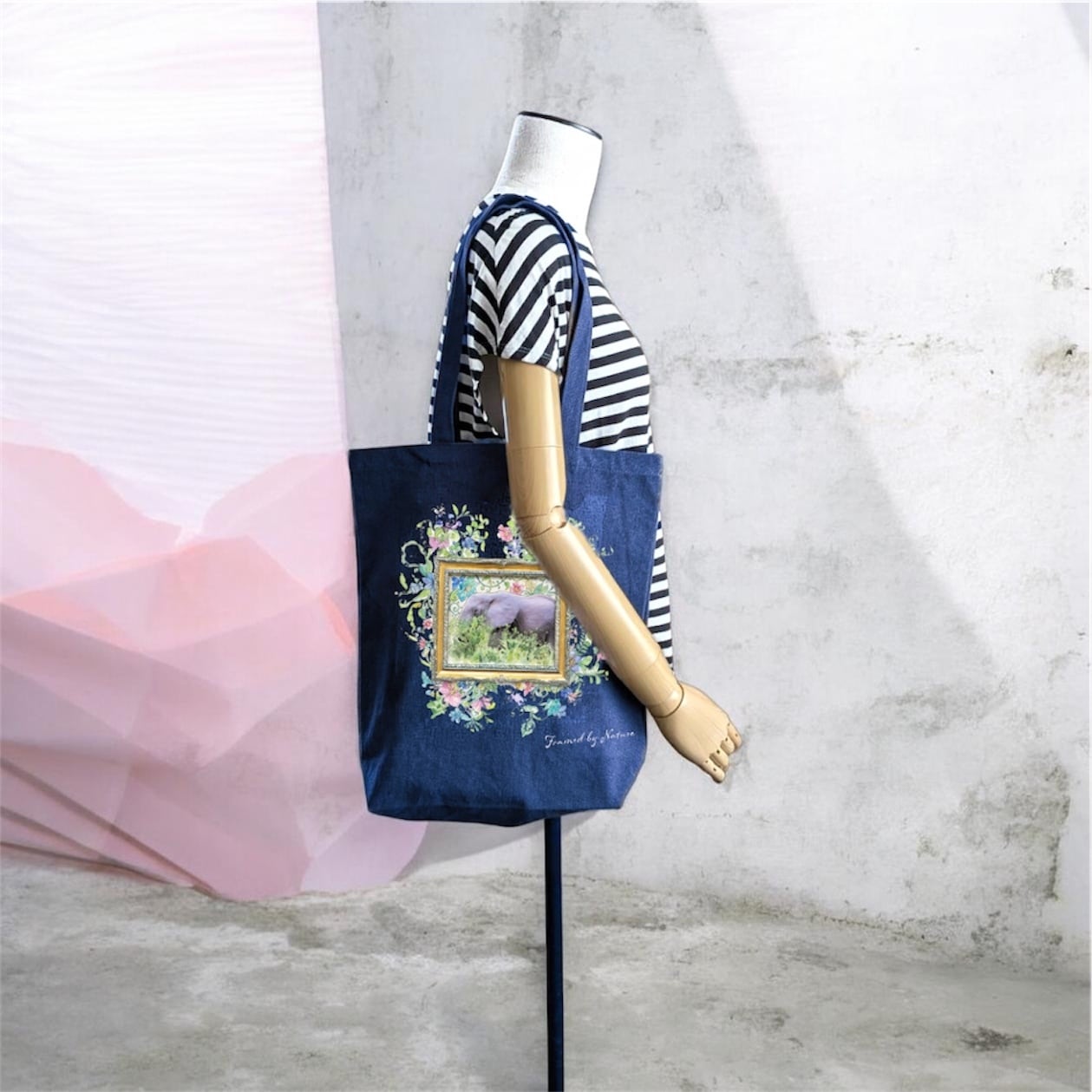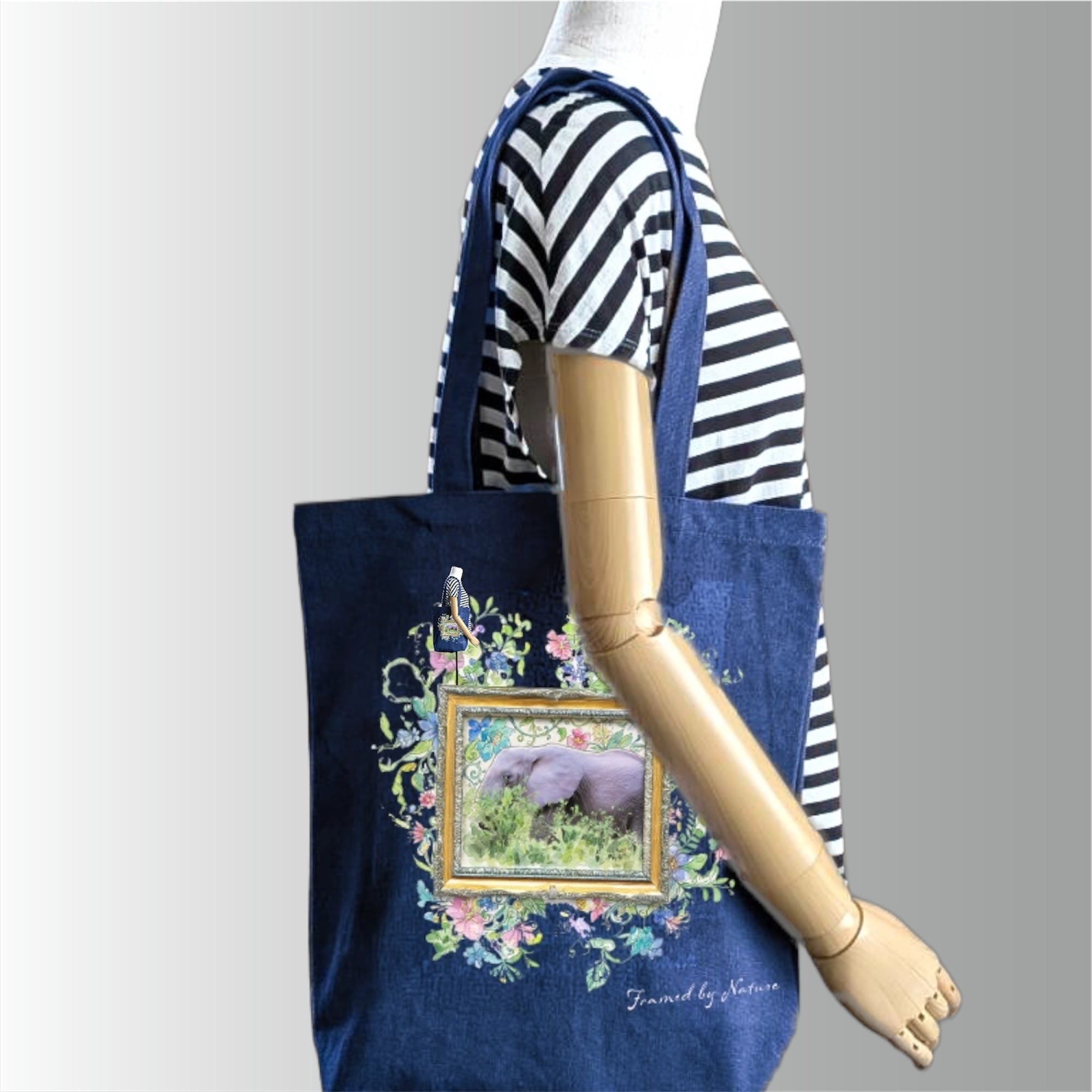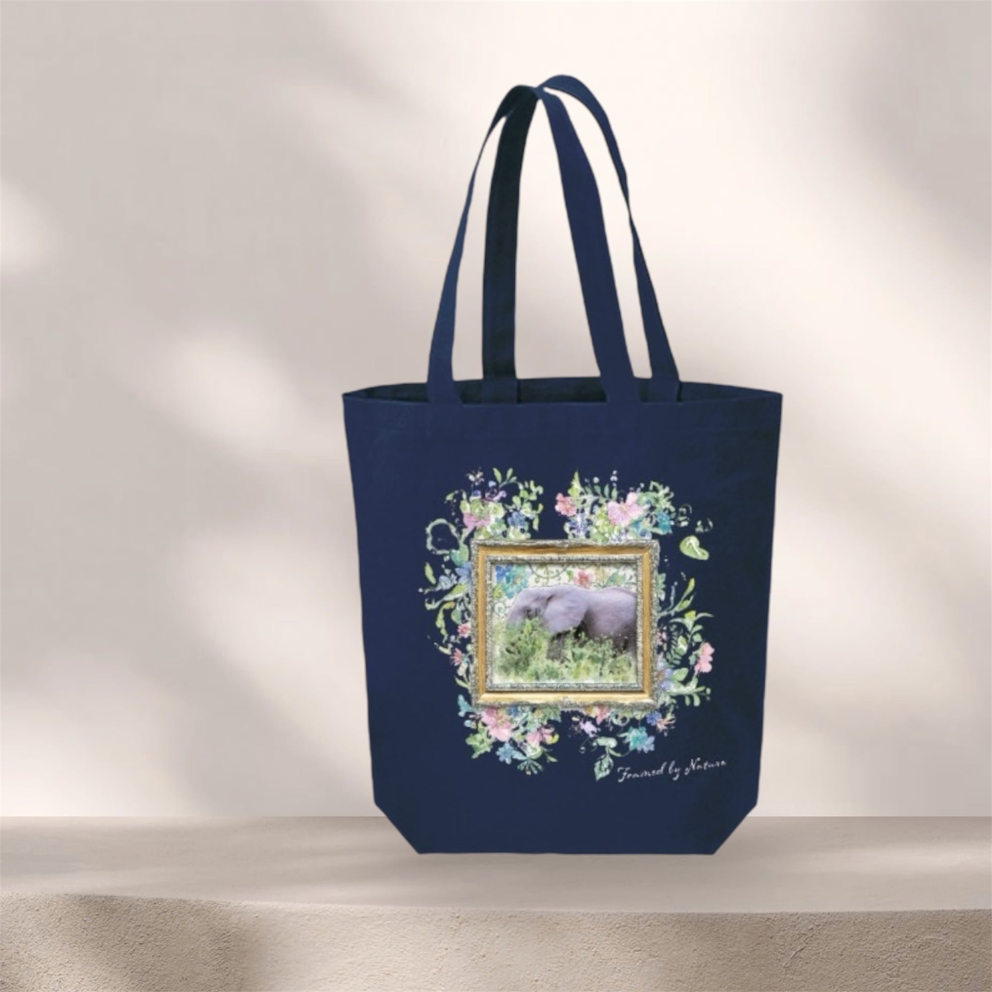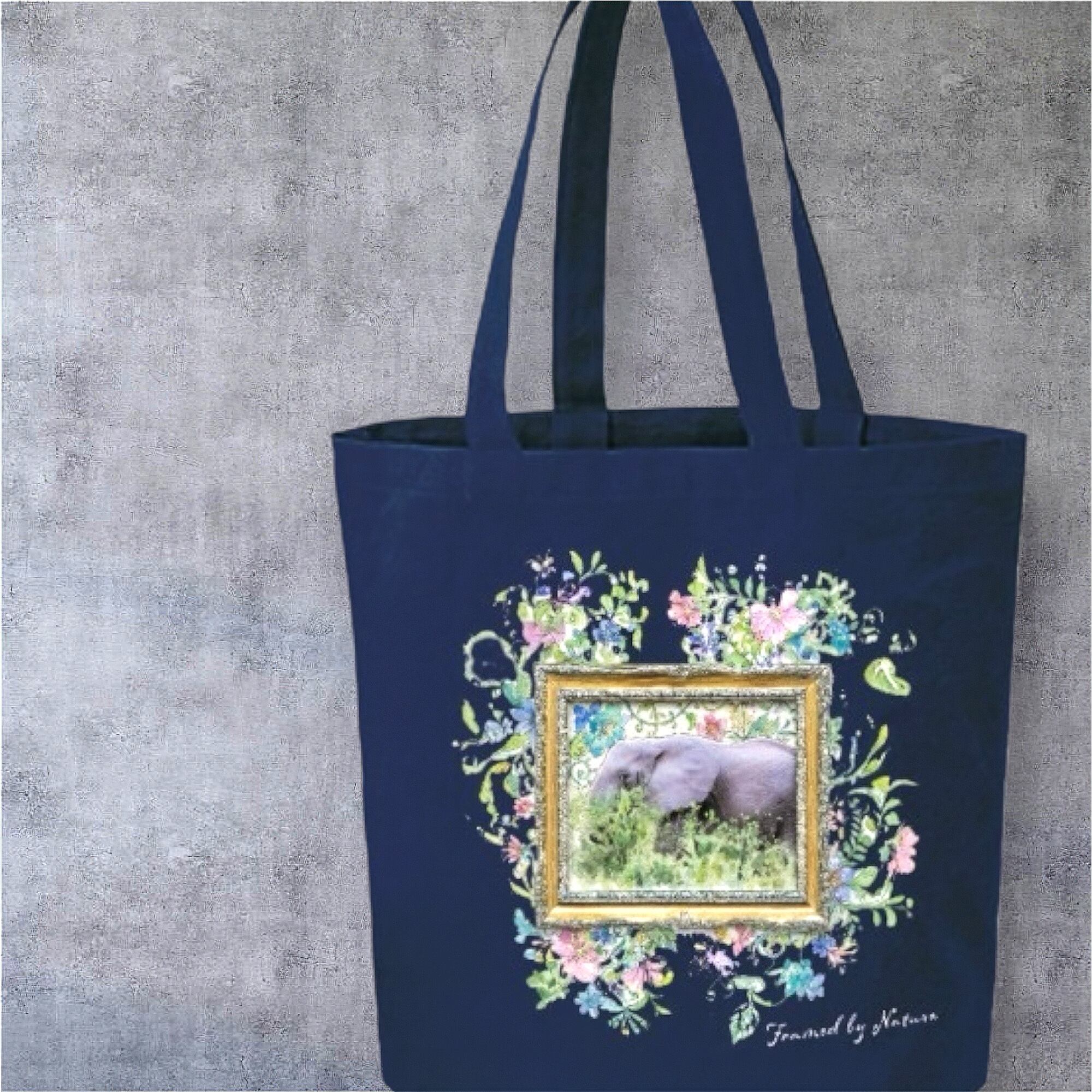 13oz ライトウォッシュキャンバストート(M) アフリカゾウ コットンバッグ ネイビー