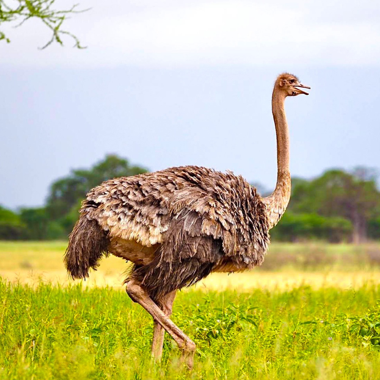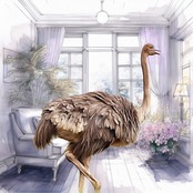 タンザニアのセレンゲティ国立公園でゆったりと歩く健康美が美しいダチョウ。この健康美をリビングに立たせてみました。メスは昼間卵を守るためこの色ですが、オスは夜卵を守るために黒い羽根をしています。「A moment of peace :平和なひととき。癒しや穏やかな感情」という言葉と共にお届けします。