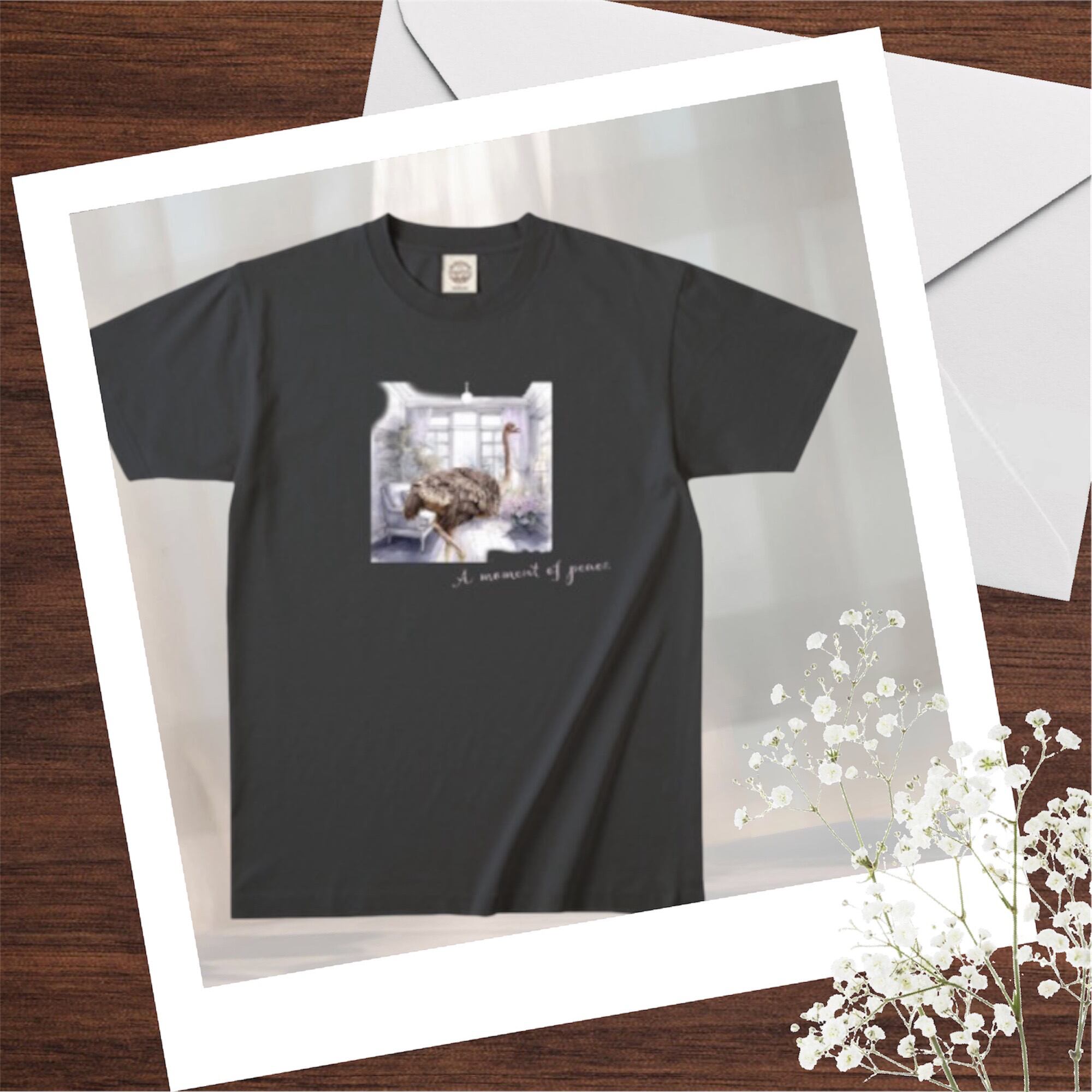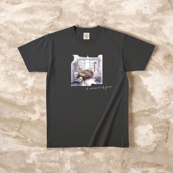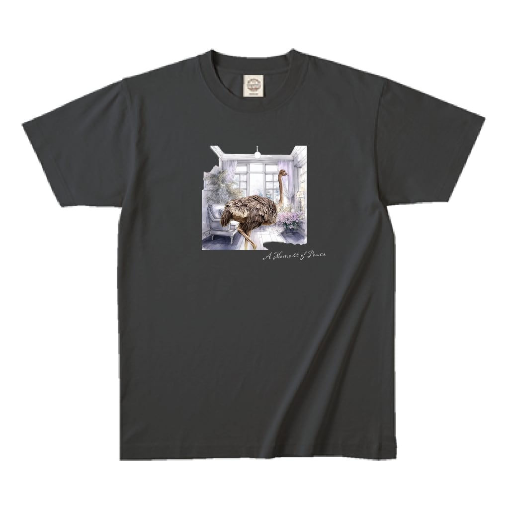 オーガニックコットン 100% Tシャツ リビングに立っているダチョウ フロントプリント 敏感場 綿100% スミクロ TRUSS 5.3oz