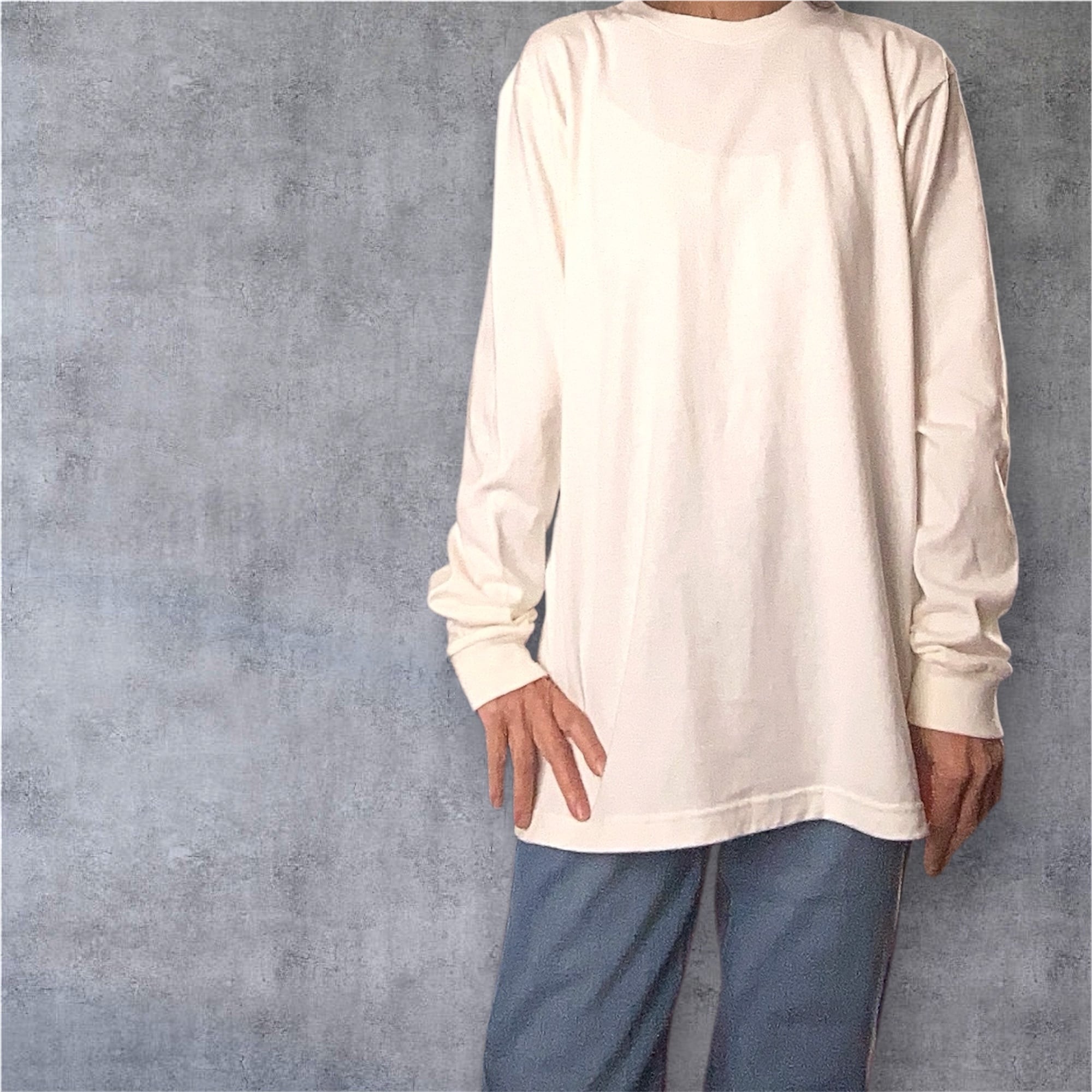 コットン100%長袖リブTシャツ ライオン バックプリント アイボリー Printstar 5.6oz ヘビーウェイト