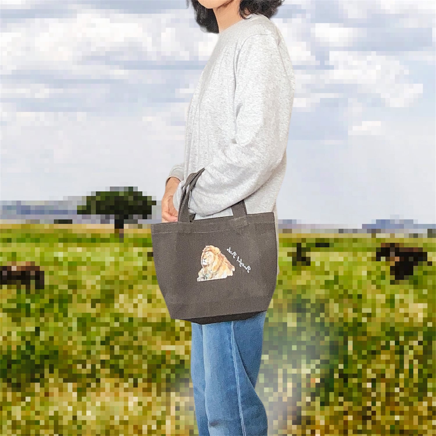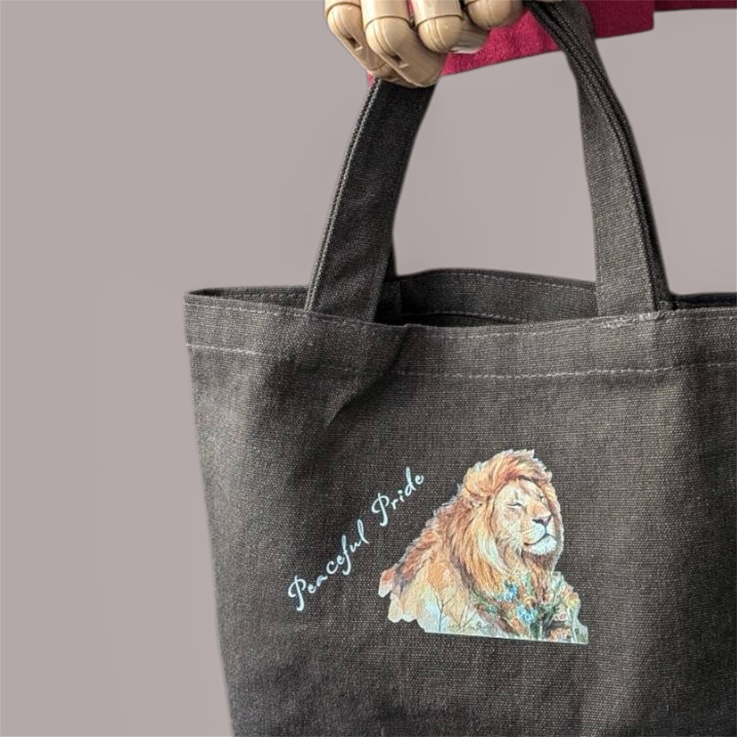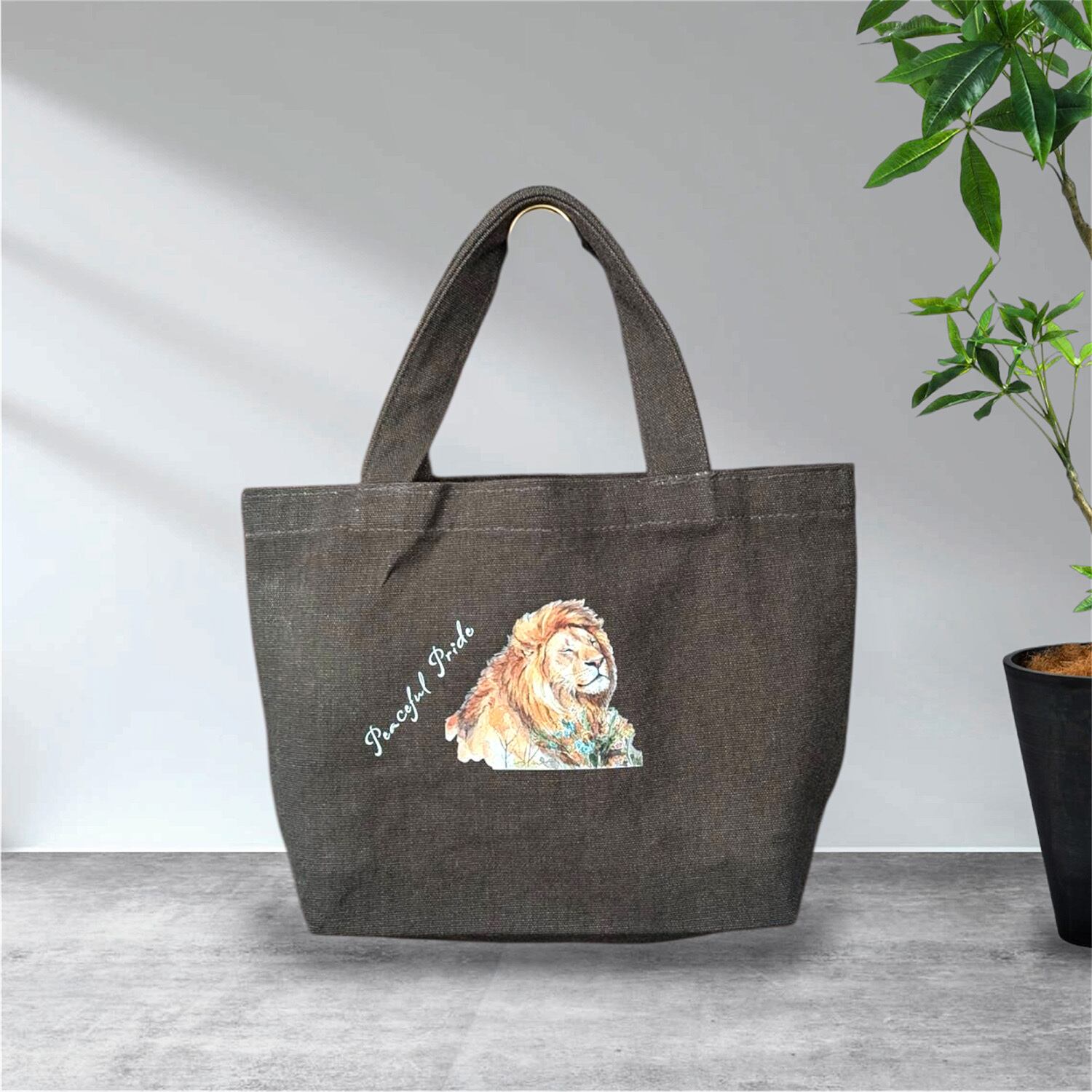 13oz ライトウォッシュキャンバストート(S) ライオン コットンバッグ チャコールブラックリーブ