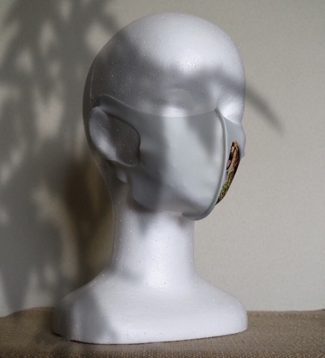 目、頬の横、顎の下など、大きめのマスクで隙間のできやすいポイントをしっかりブロックすることができます。とにかくよく伸び、高いフィット性があります。