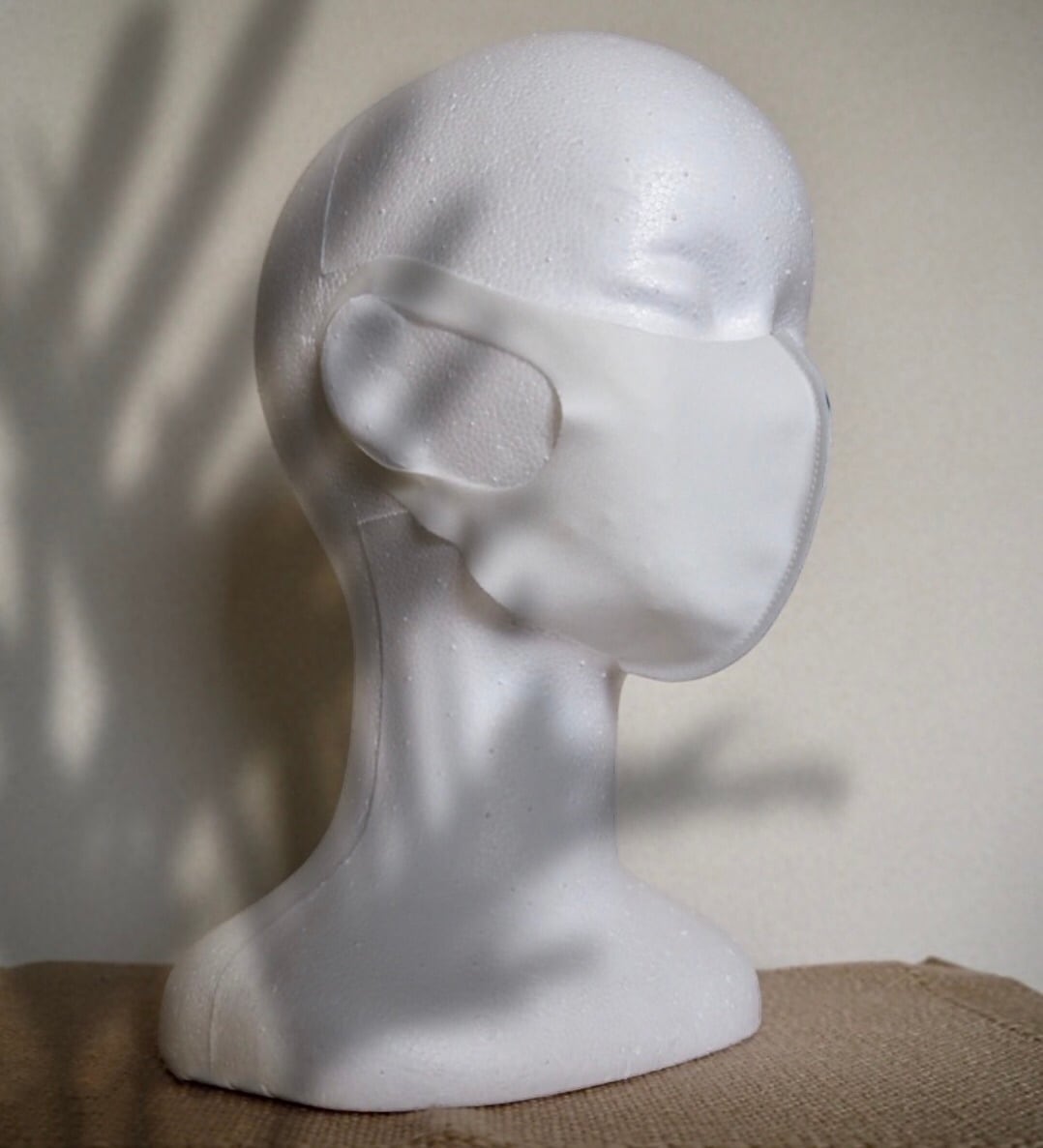 目、頬の横、顎の下など、大きめのマスクで隙間のできやすいポイントをしっかりブロックすることができます。とにかくよく伸び、高いフィット性があります。