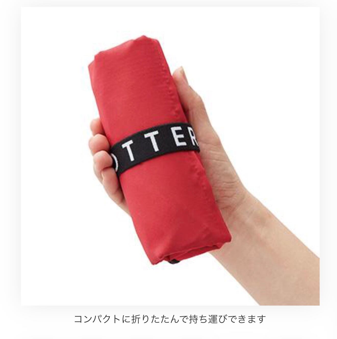 取っ手は肩掛けもできる長さです。コンパクトに折りたたんで持ち運びができ、メインのバッグに入れておけば急な荷物が増えても安心です。