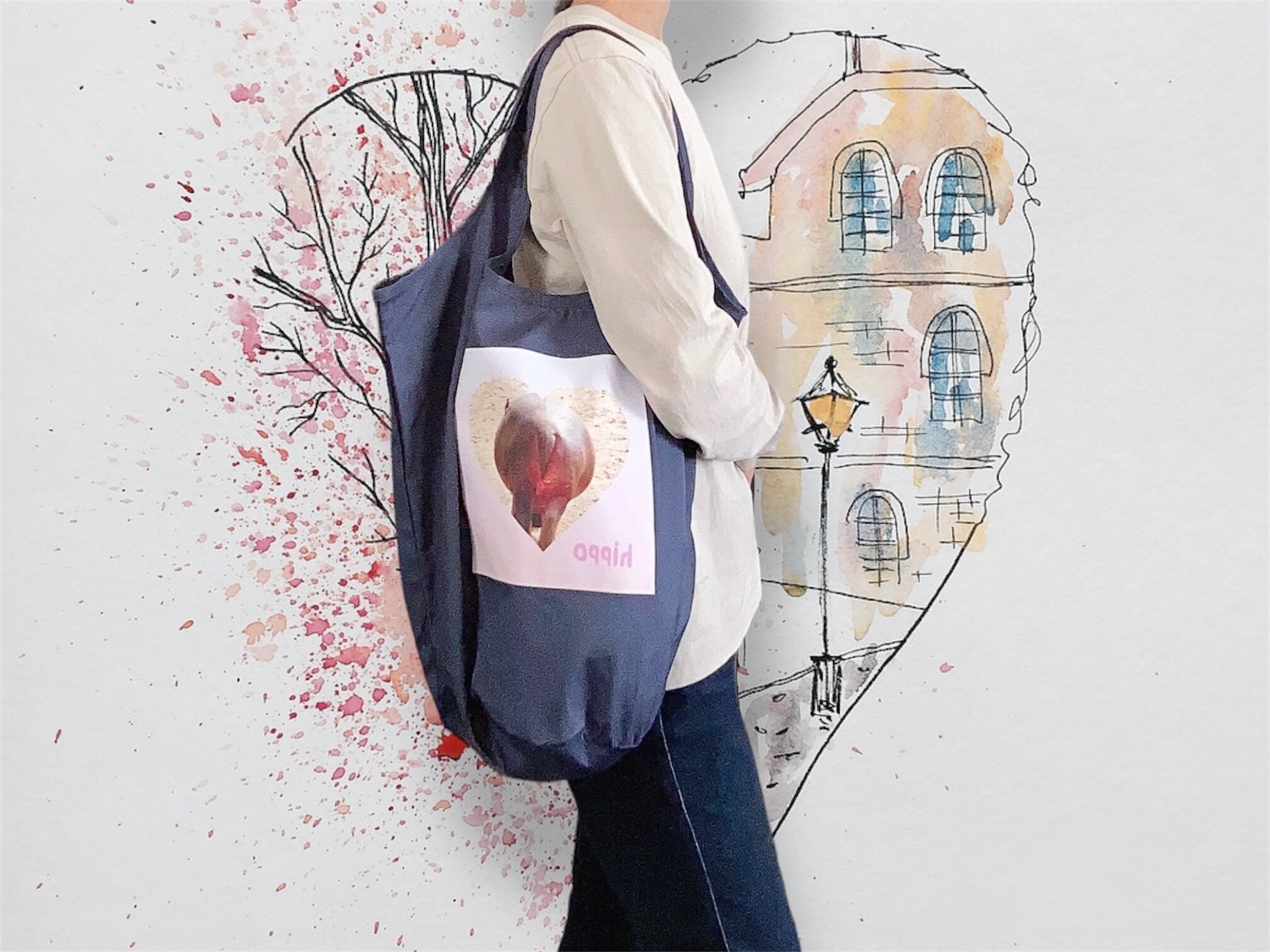 カバ好きの友人がデザインしてくれたエコバッグです。