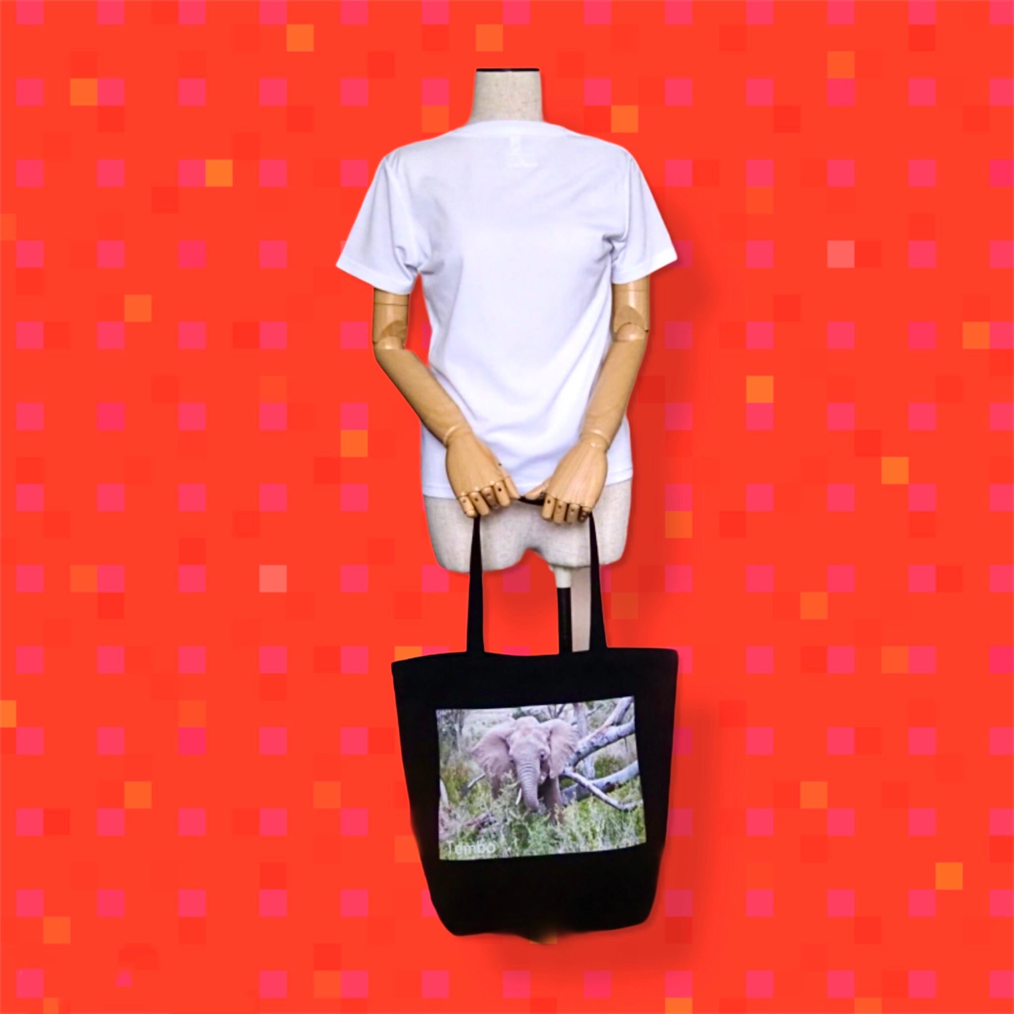ポリキャンバス トートバッグ (L) ブラック アフリカゾウ